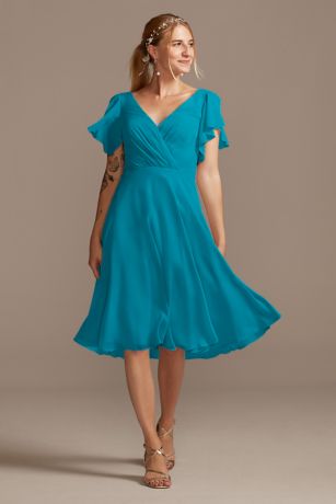 Flutter Sleeve Georgette Wrap Bridesmaid Dress Style F20039 Oasis 12 Turquoise Bridesmaid Dresses Teal Bridesmaid Dresses Davids Bridal Bridesmaid Dresses